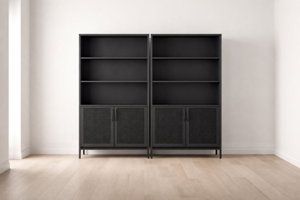Libreria in Metallo Nero con Ripiani e Ante