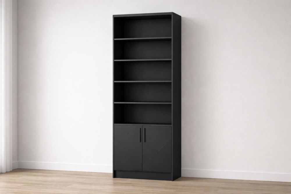 Libreria in Legno con Ripiani e Ante Nero