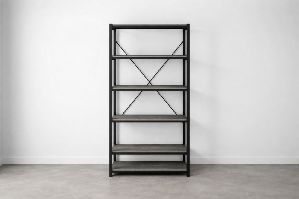 Scaffale a più ripiani in legno e metallo nero 180x90x40 cm