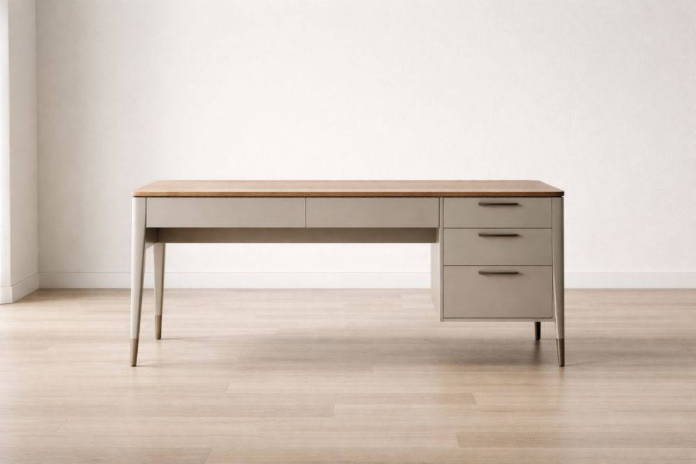 Scrivania in legno e metallo con tre cassetti beige