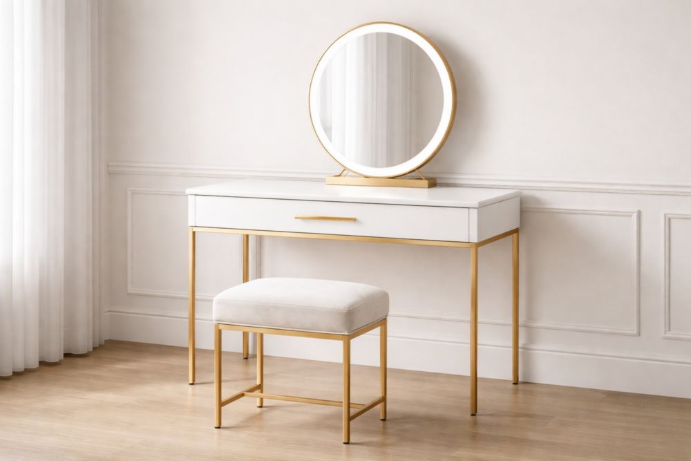 Tavolo da Toeletta con Specchio Retroilluminato e Sgabello